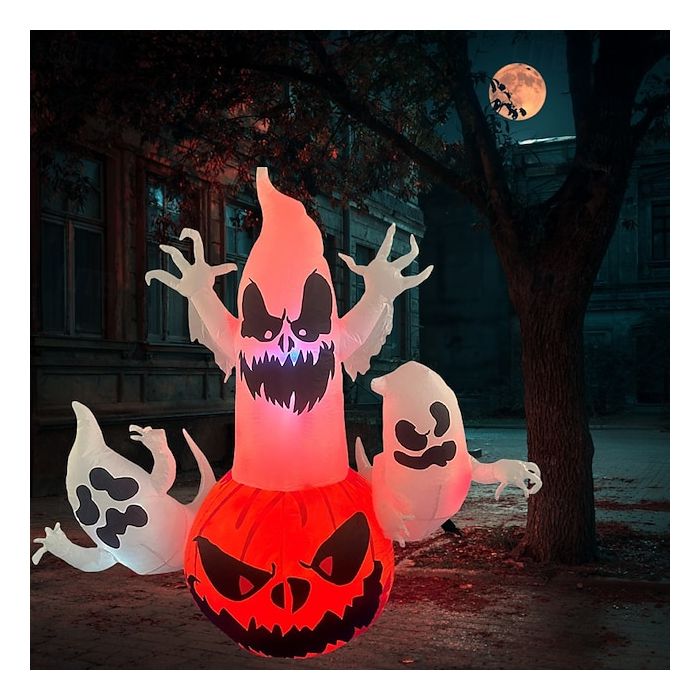 1 Pc Halloween 1.8M/5.91Inch3 Head Ghost Pumpkin with Lamp Inflatable Air Model Indoor and Outdoor Courtyard Garden Lawn Party Festival Atmosphere Decorative Lamp US/EU/UK/AU Plug